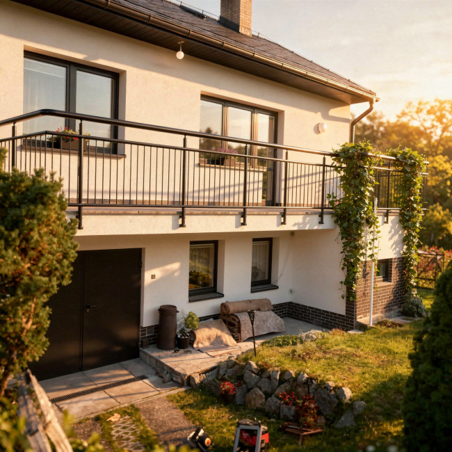 Hliníkové kulaté zábradlí na terasu a balkón s bočním kotvením přináší moderní a elegantní vzhled.