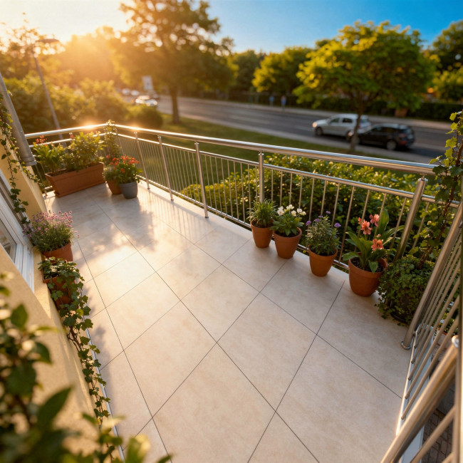 Hliníkové kulaté zábradlí na terasu s horním kotvením, navržené pro moderní a stylový vzhled.