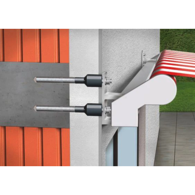 Vysoce nosný distanční montážní systém s přerušením tepelného mostu, určený pro upevnění na izolovaných i neizolovaných površích. Díky adaptéru s plastovým kuželem efektivně přerušuje tepelný most a zabraňuje tepelným ztrátám. Systém umožňuje individuální a flexibilní nastavení délky pomocí komerčně dostupných závitových tyčí a je schválen pro vysoké zatížení v široké škále stavebních materiálů.